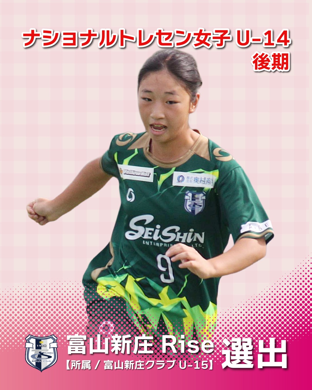 富山新庄クラブ女子チーム 「富山新庄Rise」で活動している1名の選手が、「JFAナショナルトレセン女子U-14 後期」に選出されましたので、ご案内いたします。