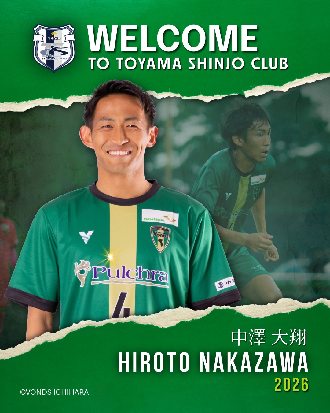 このたび、中澤 大翔 選手が、VONDS市原FCより新加入することになりましたので、下記の通りお知らせいたします。