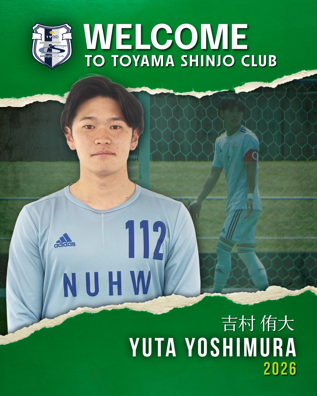 このたび、吉村 侑大 選手が、新潟医療福祉大学より新加入することになりましたので、下記の通りお知らせいたします。