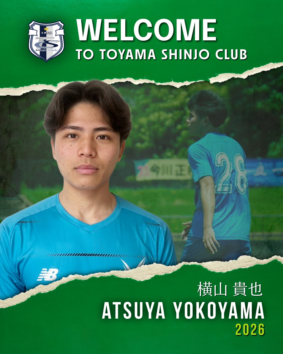 このたび、横山 貴也 選手が、山梨学院大学より新加入することになりましたので、下記の通りお知らせいたします。